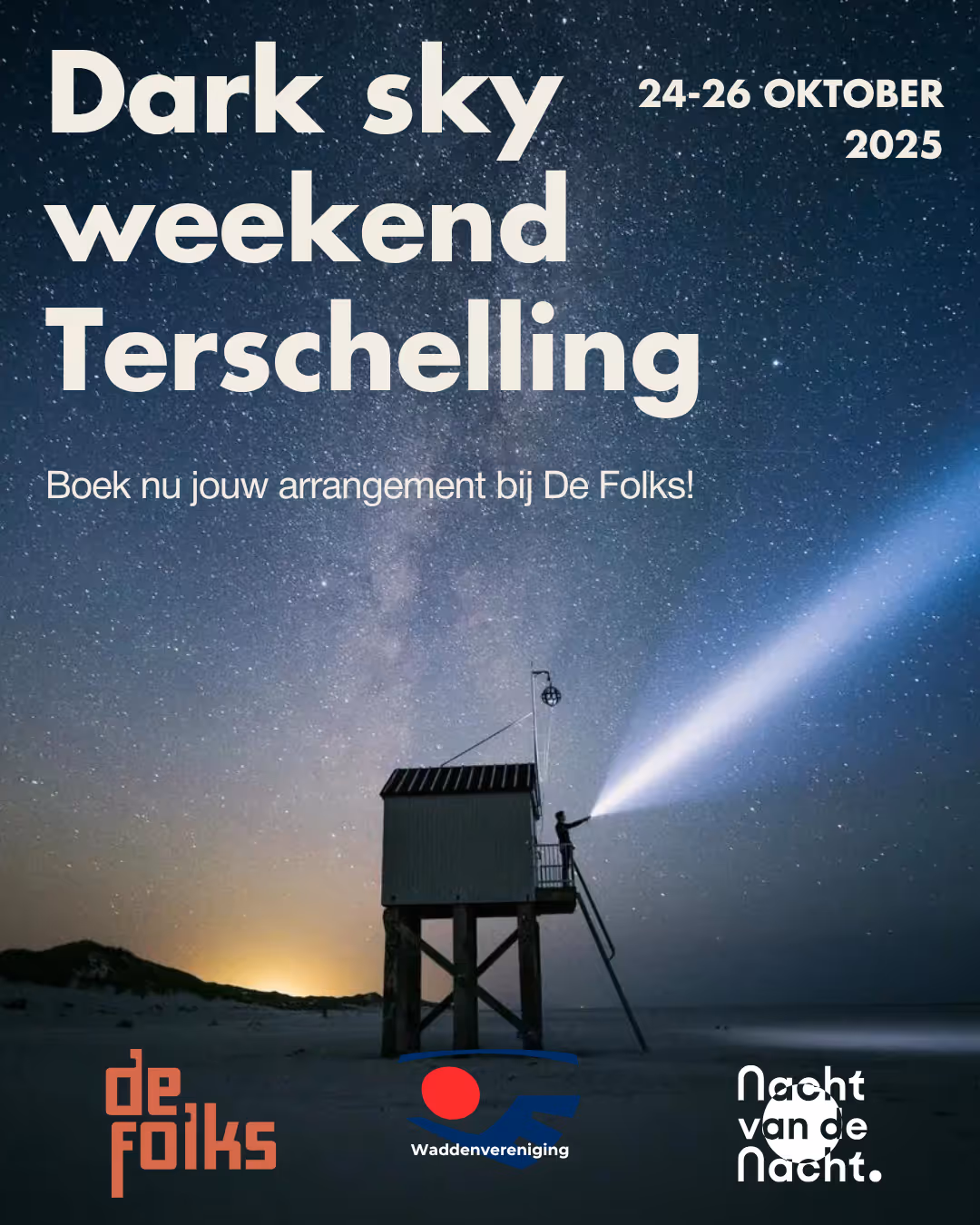 Kom je bij ons sterrenkijken? Een weekend lang duiken we samen het donker in, vol boeiende lezingen en excursies. Beleef dit bijzondere weekend tijdens de Nacht Van De Nacht op een van de donkerste en meest ongerepte plekken van Europa: Dark Sky ark Terschelling.